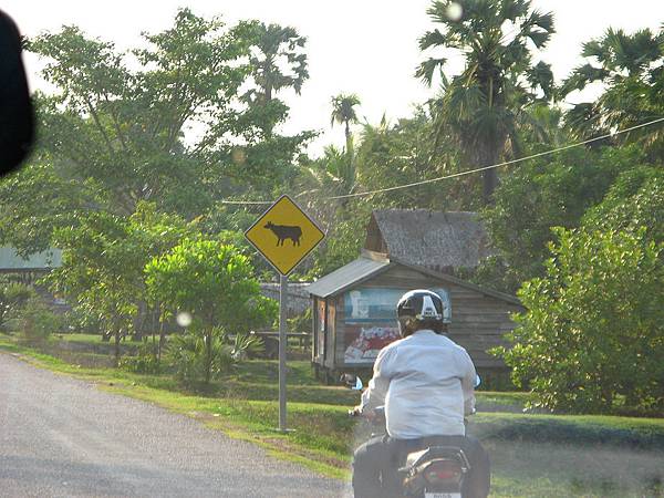 北海道有熊出沒;澳洲有袋鼠注意;柬埔寨,則到處都是小心牛的標誌,