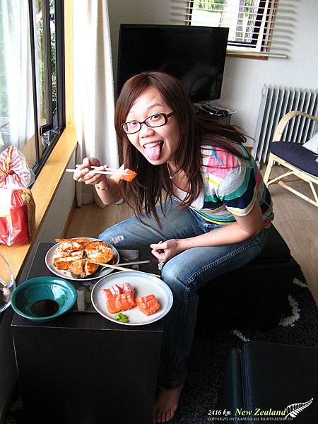 跑到臨近的鮭魚養殖場,買了新鮮的鮭魚回來自行料理,